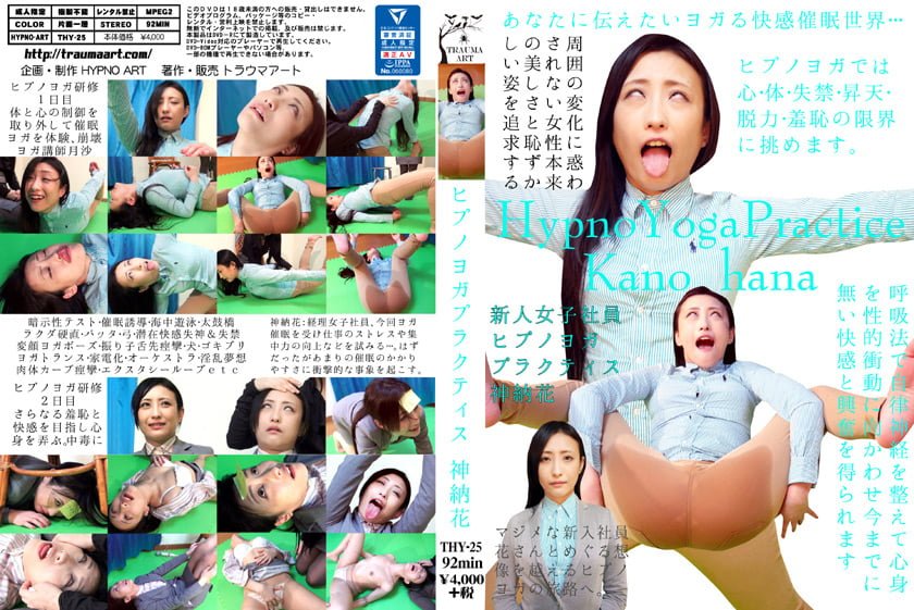 ヒプノヨガでは独自の暗示方や呼吸方で自律神経を整えて心・体・失禁・昇天・脱力・羞恥の限界に挑んで今までに無い快感と興奮を得られますます。被験者・神納花:経理に配属されたマジメな女子社員で仕事のストレスや集中力の向上などを試みる…はずだったがあまりの催眠のかかりやすさに衝撃的な事象を起こす。暗示性テスト・催眠誘導・海中遊泳・太鼓橋・ラクダ硬直・バッタ・弓・潜在快感失神&失禁・変顔ヨガポーズ・振り子舌先痙攣・犬・ゴキブリ・ヨガトランス・家電化・オーケストラ・淫乱夢想・肉体カーブ痙攣・エクスタシーループetc…周囲の変化に惑わされない女性本来の美しさと恥ずかしい姿を追求するヒプノヨガの旅路へ。